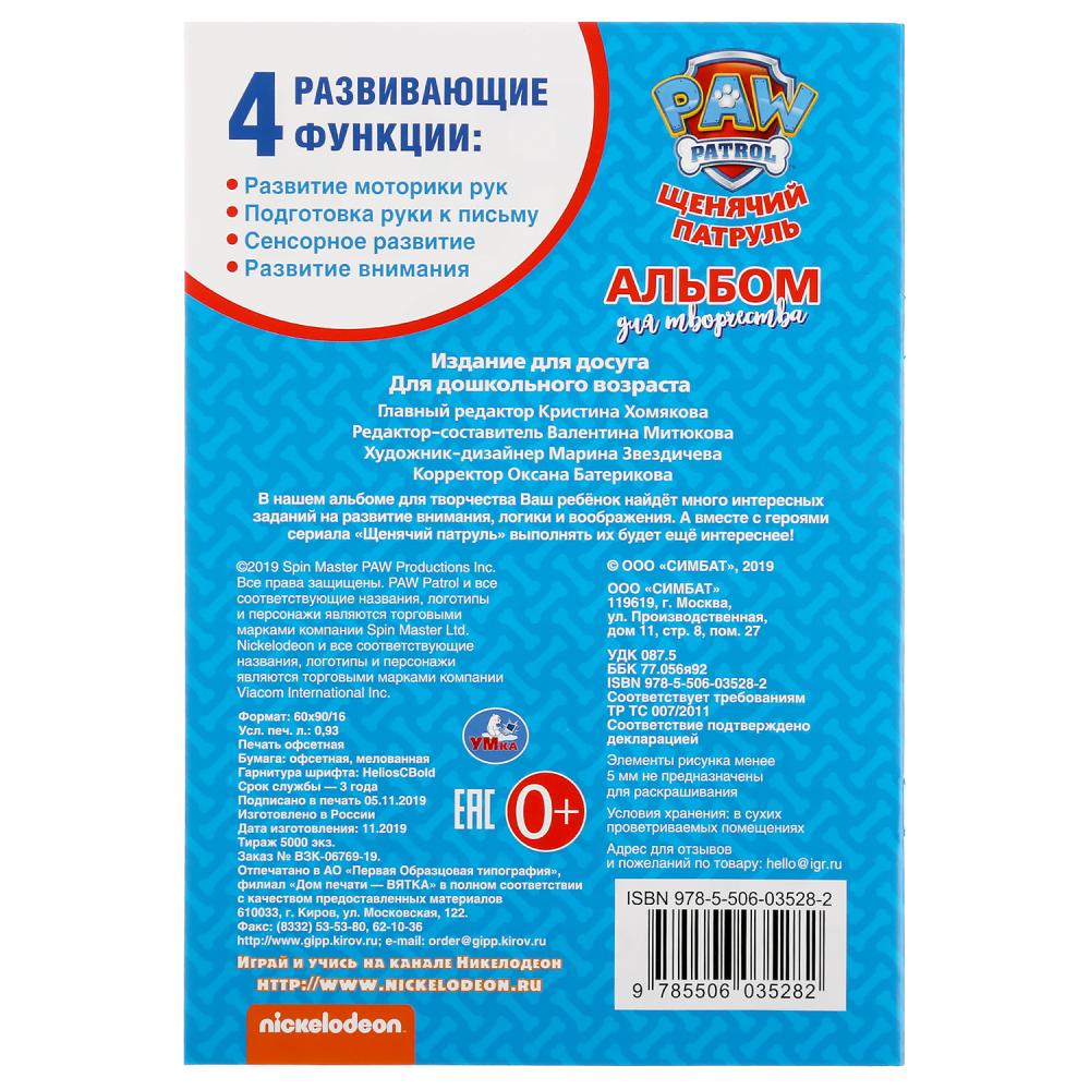 "УМКА". НАСТОЯЩИЕ СПАСАТЕЛИ. ЩЕНЯЧИЙ ПАТРУЛЬ (АЛЬБОМ ДЛЯ ТВОРЧЕСТВА А5) 145Х210ММ. 16 СТР в кор.50шт
