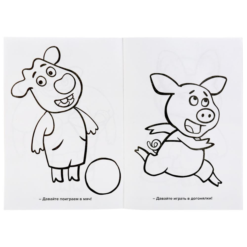 Малыш будет рад повстречаться на страницах раскраски с героями любимого мультфильма. В ней он найдёт интересные картинки с чёткими контурами и текстами к ним. Благодаря компактному размеру раскраску удобно брать с собой в дорогу.