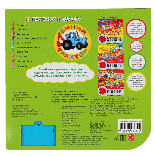 "Умка". Синий трактор. 10 песенок в дорогу. Книга-пианино с 23 клавишами и 10 песенками в кор.16шт