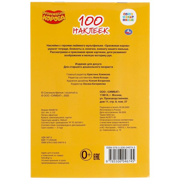 "УМКА". СОЮЗМУЛЬТФИЛЬМ. ОРАНЖЕВАЯ КОРОВА (АЛЬБОМ НАКЛЕЕК МАЛЫЙ ФОРМАТ). 145Х210ММ. 4 СТР. в кор.50шт