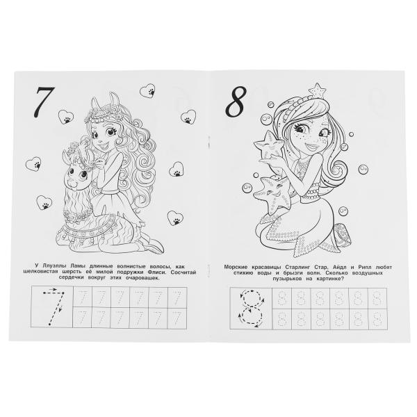 Раскраска с глиттерным лаком «Enchantimals. Учим цифры» ТМ «УМка» - отличный подарок для юных художников:- тщательно прорисованные картинки для раскрашивания- короткие сюжетные тексты- прописи с цифрами- задания на счёт- красивая блестящая обложка-