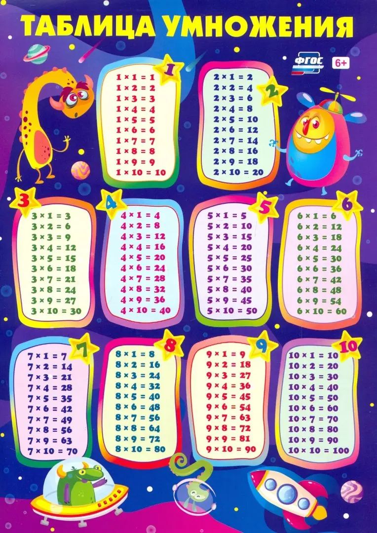 Учебный плакат "Таблица умножения" - прекрасный помощник ученикам в освоении основ математики. Таблица-плакат на стене или рабочем столе ученика - это всегда успешно выполненные уроки. Такой плакат должен быть в каждом учебном кабинете.Формат: А4.Материал: мелованный картон.