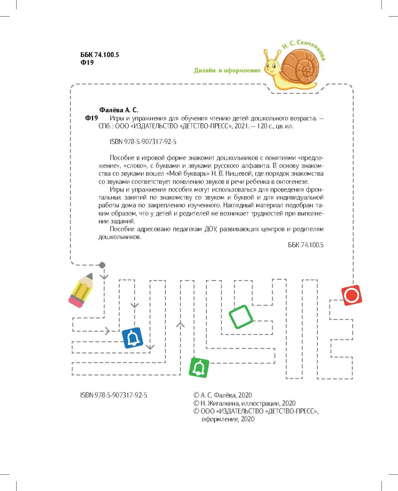 Фалёва. Игры и упражнения для обучения чтению детей дошкольного возраста. 5-7 лет. (ФГОС)