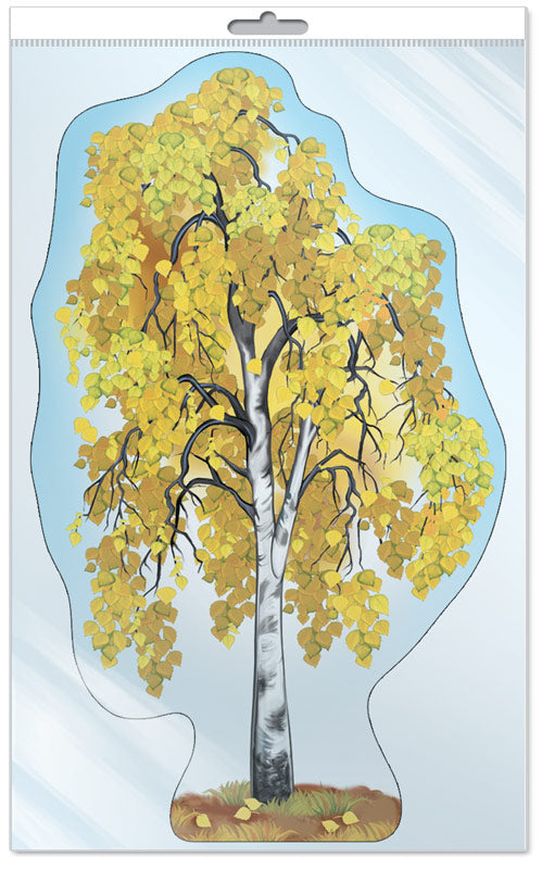 *ФБ-13649 ПЛАКАТ ВЫРУБНОЙ А2 В ПАКЕТЕ. Береза осенняя (в индивидуальной упаковке, с европодвесом и клеевым клапаном) - тема Деревья