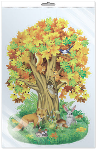 *ФБ-16267 ПЛАКАТ ВЫРУБНОЙ А2+ В ПАКЕТЕ. Осенний клен со зверятами (двухсторонний, ВД-лак, в индивидуальной упаковке, с европодвесом и клеевым клапаном)
