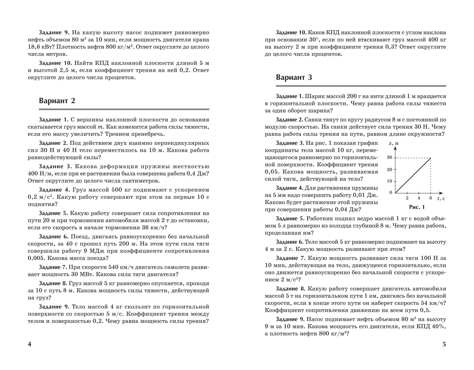 Каждая из тем этого раздела включает в себя 5 контрольных работ, состоящих из 10 заданий разного уровня трудности. Их содержание аналогично приведенным в Открытом банке заданий и используемым на ЕГЭ по физике. Если уроки по физике спаренные, как это имеет место в наукоемких лицеях и гимназиях естественно-научного профиля, то учитель может предлагать учащимся решить контрольную работу полностью, а на обычном 45-минутном уроке достаточно решения половины заданий по выбору учителя. Все задания соответствуют программе по физике для средней школы и способны надежно проверить уровень знаний старшеклассников.
