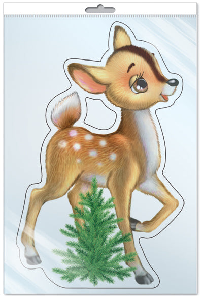 *ФМ-10942 ПЛАКАТ ВЫРУБНОЙ А4 В ПАКЕТЕ. Олененок с елочкой (с блестками в индивидивидуальной упаковке с европодвесом и клеевым клапаном)