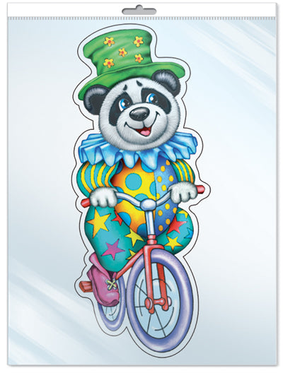 *ФМ-11046 ПЛАКАТ ВЫРУБНОЙ А4 В ПАКЕТЕ. Панда на велосипеде (с блестками в индивидивидуальной упаковке с европодвесом и клеевым клапаном)