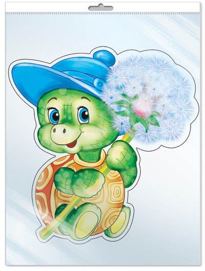 *ФМ-11338 ПЛАКАТ ВЫРУБНОЙ А4 В ПАКЕТЕ. Черепашка с одуванчиком (с блестками и уф-лаком в индивидивидуальной упаковке с европодвесом и клеевым клапаном)