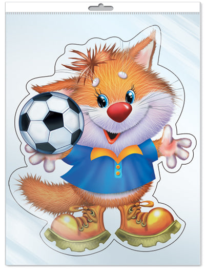 *ФМ-11422 ПЛАКАТ ВЫРУБНОЙ А4 В ПАКЕТЕ. Лисенок-футболист (с блестками в индивидивидуальной упаковке с европодвесом и клеевым клапаном)