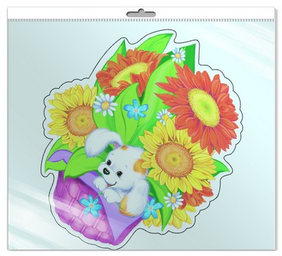 *ФМ-9331 ПЛАКАТ ВЫРУБНОЙ А4 В ПАКЕТЕ. Корзина с собакой (с блестками в индивидивидуальной упаковке с европодвесом и клеевым клапаном)