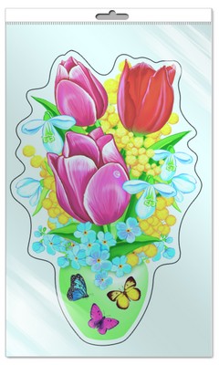 *ФМ-9485 ПЛАКАТ ВЫРУБНОЙ А4 В ПАКЕТЕ. Букет в вазочке (с блестками в индивидивидуальной упаковке с европодвесом и клеевым клапаном)