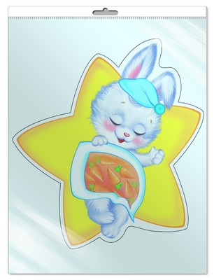 *ФМ-9516 ПЛАКАТ ВЫРУБНОЙ А4 В ПАКЕТЕ. Зайчик на звездочке (с блестками в индивидивидуальной упаковке с европодвесом и клеевым клапаном)