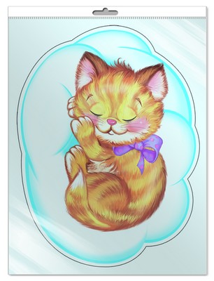 ФМ-9537 МИНИ-ПЛАКАТ ВЫРУБНОЙ В ПАКЕТЕ: Котенок на облаке (с европодвесом)
