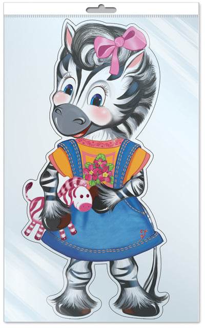 *Ф-11189 ПЛАКАТ ВЫРУБНОЙ А3 В ПАКЕТЕ. Зебра - группа Животные (блестки, в индивидуальной упаковке. с европодвесом и клеевым клапаном)