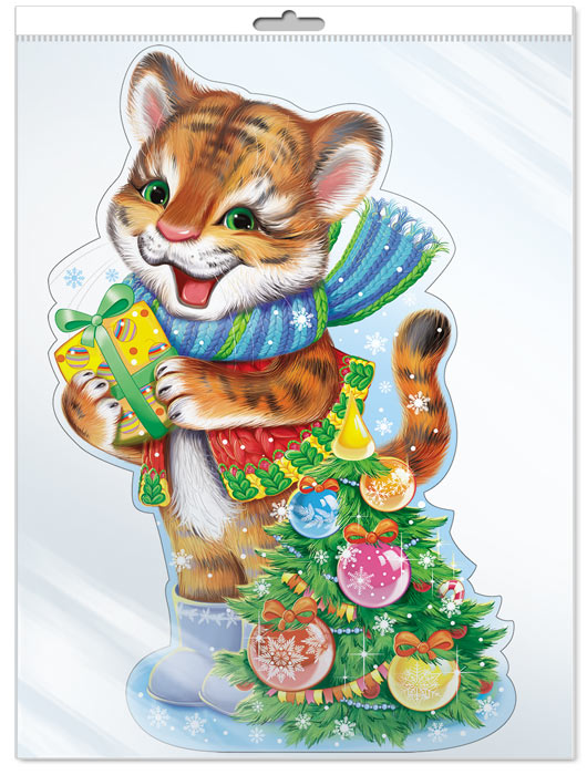 *Ф-13925 ПЛАКАТ ВЫРУБНОЙ А3 В ПАКЕТЕ. Тигренок новогодний - группа Животные (в индивидуальной упаковке, с европодвесом и клеевым клапаном)