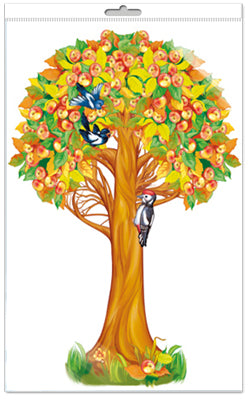 *Ф-15211 ПЛАКАТ ВЫРУБНОЙ А3+ В ПАКЕТЕ. Яблоня осенняя с яблоками (двухсторонний, в индивидуальной упаковке, с европодвесом и клеевым клапаном) - тема Деревья
