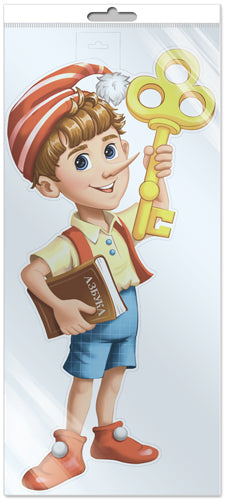 *Ф-16258 ПЛАКАТ ВЫРУБНОЙ А3 В ПАКЕТЕ. Буратино (двухсторонний, ВД-лак, в индивидуальной упаковке, с европодвесом и клеевым клапаном)