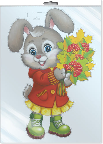 *Ф-16283 ПЛАКАТ ВЫРУБНОЙ А3+ В ПАКЕТЕ. Осенний зайчик с букетом листьев (двухсторонний, в индивидуальной упаковке, с европодвесом и клеевым клапаном)