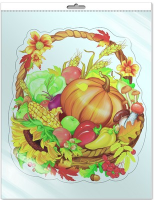 Ф-8762 Плакат вырубной А3 в пакете. Корзина на Праздник осени (в индивидуальной упаковке с европодвесом) Вырубной плакат упакован в полипропиленовые пакеты с европодвесом. Благодаря отверстию в верхней части пакета, упакованный товар легко и эстетично вывешивается на специальной стойке. Яркий и красочный плакат поможет украсить интерьер и создать праздничный настрой, а также станет незаменимым атрибутом в детском саду и начальной школе.
