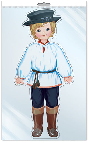 *Ф-9682 ПЛАКАТ ВЫРУБНОЙ А3 В ПАКЕТЕ. Мальчик в карельском костюме (с блестками в индивидуальной упаковке с европодвесом и клеевым клапаном) Плакат познакомит детей с традиционными костюмами народов России. Костюмы каждого народа отличались большим разнообразием, менялись от губернии к губернии, их детали различались, поэтому на наших карточках представлены обобщенные варианты костюмов.