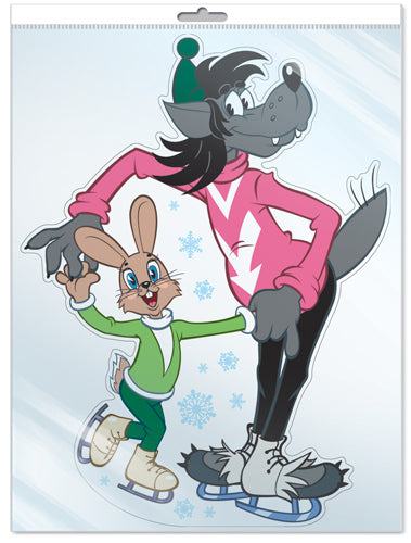*Ф2-12181-П ПЛАКАТ ВЫРУБНОЙ А3 В ПАКЕТЕ.Волк и заяц фигуристы из м-ф Ну, погоди! (с блестками в индивидивидуальной упаковке с европодвесом и клеевым клапаном)