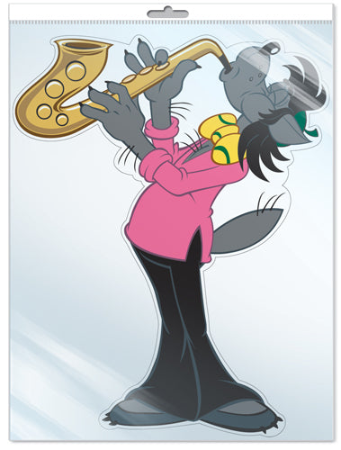 *Ф2-12653-П ПЛАКАТ ВЫРУБНОЙ А3 В ПАКЕТЕ. Волк с трубой из мультфильма Ну, погоди! (с блестками в индивидивидуальной упаковке с европодвесом и клеевым клапаном)