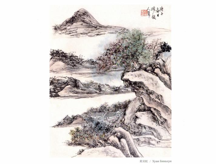 Хуан Биньхун (1865-1955) - выдающийся деятель китайского искусства. При рождении получил имя Маочжи, также носил имена Поцунь, Пужэнь, Пучэнь и Пицинь. Сам называл себя Биньхун и работал под псевдонимами Юйсян (Дарующий покровительство), Хунсоу (Радужный старец) и Хуаншань шань-чжунжэнь (Обитатель горы Хуаншань). Родился в округе Цзиньхуа провинции Чжэцзян, вырос в уезде Шэ провинции Аньхой. С детства интересовался живописью и резными печатями. В1887 году уехал в Янчжоу, где учился рисовать пейзажи шаншуй ("горы и реки") у Чжэн Шаня, а картины хуаняо ("цветы и птицы") - у Чэнь Чунгуана. После 1907 года переехал в Шанхай, где сначала работал журналистом и художественным редактором в газетах и издательствах, а позже стал преподавать в школах искусств. В 1937 году Хуан Биньхун поселился в Бэйпине, где его пригласили стать членом комиссии по оценке антиквариата Запретного города. В то же время он занимал посты научного руководителя Исследовательского института китайской живописи и профессора Школы искусств Бэйпина. В 1948 году вернулся в Ханчжоу, преподавал в Национальной школе искусств Ханчжоу. В последние годы он был заместителем председателя Восточно-китайского отделения союза художников, а также членом правления Союза китайских художников.Хуан Биньхун создавал великолепные картины в жанрах шаньшуй и хуаняо, особое внимание уделял изображению природы. Известность к художнику пришла достаточно поздно, музей имени Хуан Биньхуна был открыт в Ханчжоу лишь в 1999 году.