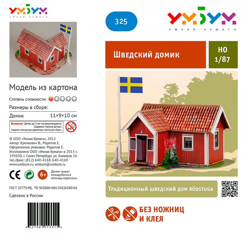 Handling time: 14 days Игрушка "Шведский домик.Сборная модель из картона. Масштаб HO 1/87". Издательство: Умная бумага. Год выпуска: 2013. Автор: Крепкович В., Муретов Е. Стандарт: 100.
