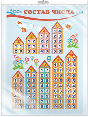 Наглядное пособие «Состав числа» издано на плотном картоне, размер 29,7х21 см (А4).