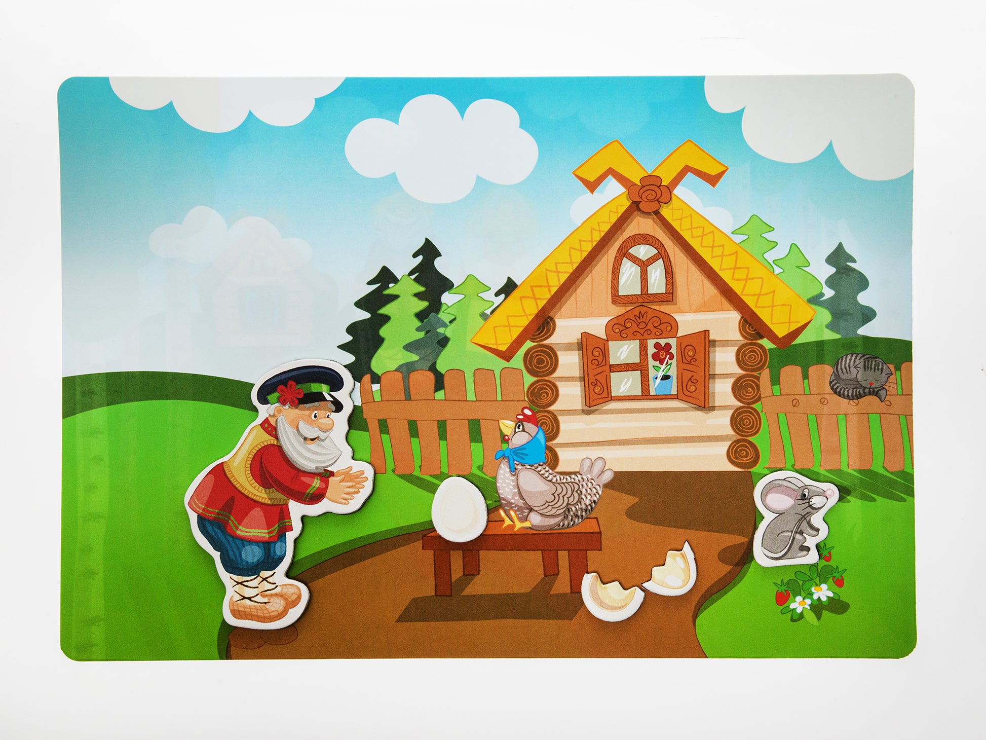Выбрав сказку, прочтите ее сначала всю ребенку вслух. Затем вместе с ним вспомните всех участников, только что прочитанного, выберите их из всех имеющихся у вас. Выберите вместе одно из игровых полей то, которое соответствует тексту сказки. Объясните, вспоминая текст сказки, ребенку по каким признакам вы выбрали именно это, опишите вместе с ним то, что Вы на нем видите. Вы готовы к новому, игровому, прочтению сказки. Мы рекомендуем Вам начать с самой короткой, а значит, самой простой для освоения сказки "Курочка Ряба":