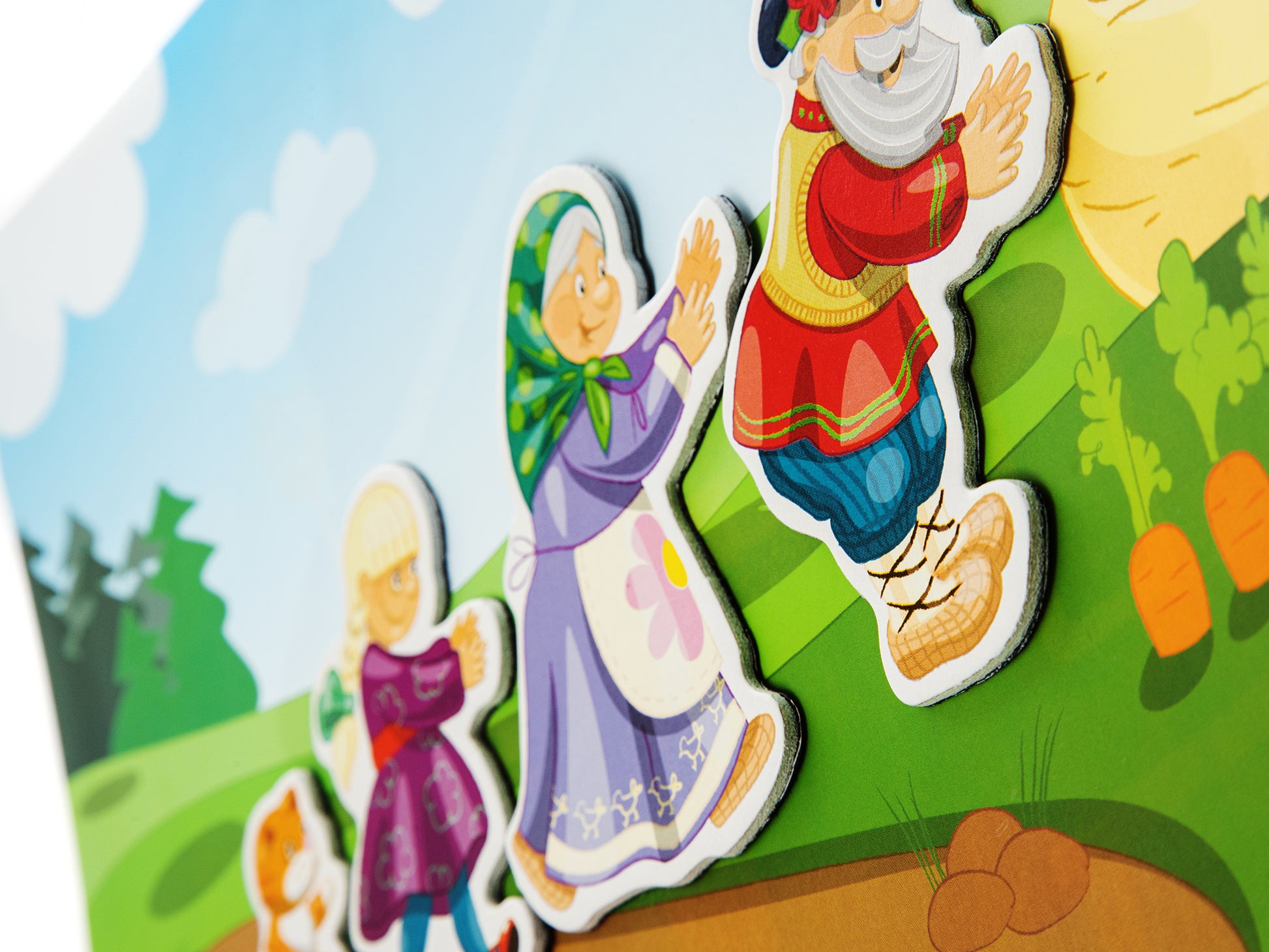 Закончив сказку, предложите Вашему малышу повторить, играя фигурками, всю сказку собственными словами. Когда у вас это станет хорошо получаться, Вы можете рассказать, используя поле и всех имеющихся героев, свою, новую, может быть даже более интересную сказку!