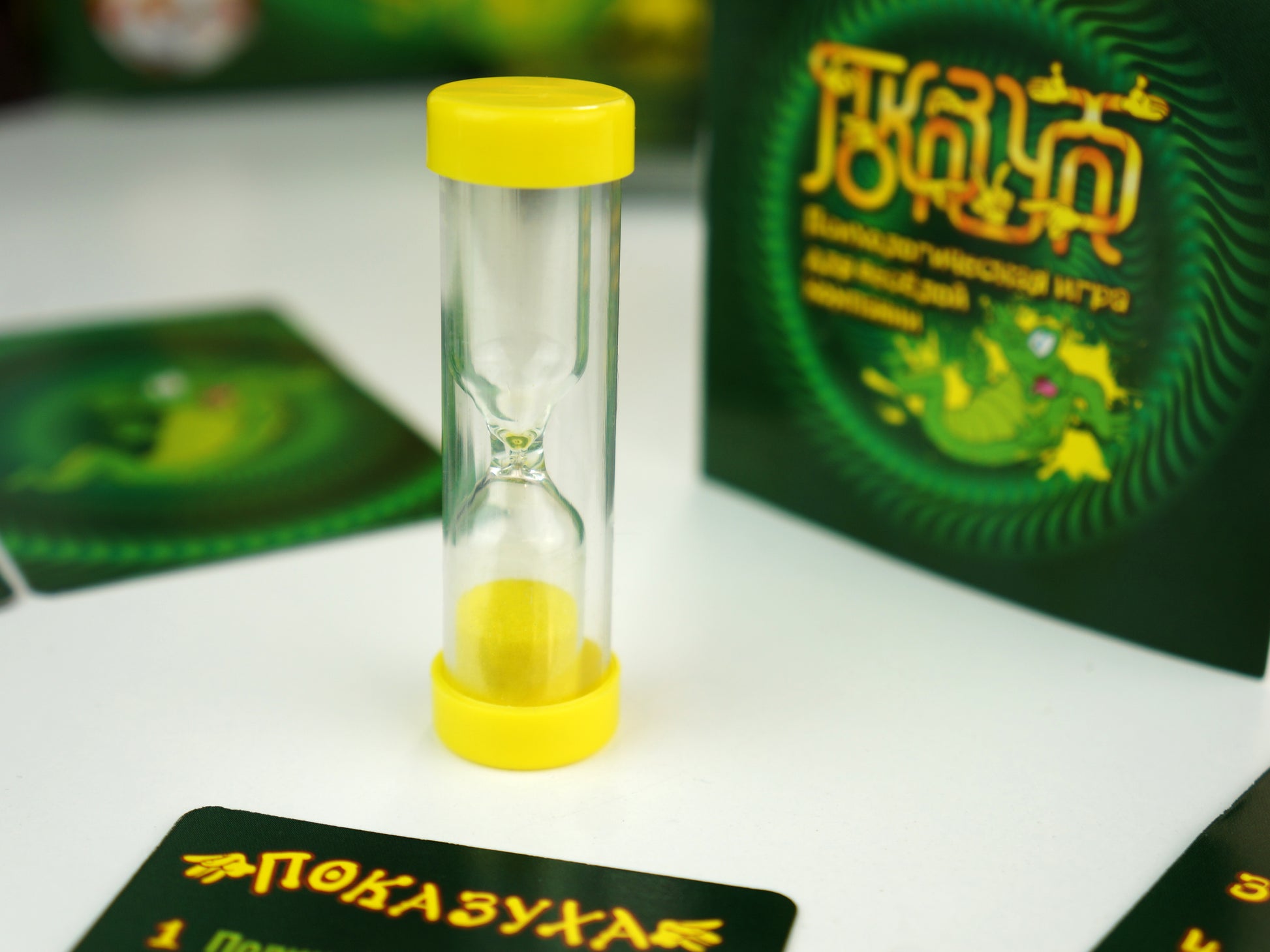 Handling time: 24 days Веселые компании очень любят, собравшись вместе, играть в психологические игры.Игра «Показуха» - одна из таких игр. Она сама по себе универсальна. Для нее не надо специальных условий, достаточно веселой компании минимум из трех человек. Помимо этого, эта веселая игра не только повышает настроение, но и развивает невербальное мышление, помогает развить в детях воображение, артистические способности, а время за игрой пройдет весело и увлекательно.Ваш ребенок сможет не только вспомнить те слова, которые он уже знает, но и познакомиться с новыми, что значительно увеличит его словарный запас.Игра рекомендована для детей старше 7 лет.Состав игры:- карточки – 64 шт;- песочные часы – 1 шт;- правила.Правила игры:Каждая из 64 карточек содержит 6 уровней сложности от легкого с сложному:1 уровень – угадать животных и профессии;2 уровень – угадать, что делает человек;3 уровень – угадать предмет;4 уровень – угадать овощи, фрукты злаки и грибы;5 уровень – угадать героев мультфильмов и фильмов;6 уровень – угадать пословицу.Загаданные слова нужно показать мимикой и жестами или описать словами (но только в том случае, если не получилось изобразить).Играть командой на команду или каждый за себя.Использованные во время игры карточки убираются в сторону до следующего уровня.В каждом из 6 уровней выигрывает тот игрок, который смог первым набрать 5 баллов, после чего игра переходит на следующий уровень. И так до шестого уровня.Подробное описание правил психологической игры «Показуха» находятся в упаковке.Сделано в России.