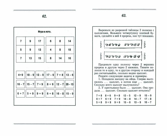 Handling time: 21 days Этот сборник задач предназначен для учеников 1 класса. В чем же его основная задача? Название говорит само за себя — счет и игра. Автор предлагает обучение детей счету совместить с игрой — обычным для этого возраста видом деятельности. В игровой форме ученики легко и с удовольствием усваивают новый материал. Задания постепенно усложняются и сопровождаются иллюстрациями, схемами, таблицами, пояснениями, которые помогают ученику разобраться в том, что от него требуется. Кроме того, счетные элементы представлены с помощью понятных каждому ребенку вещей, то есть абстрактные понятия приобретают форму конкретных предметов. Этот прием позволяет связать уже известное с новой информацией и способствует прочному усвоению материала. Использование разрезных таблиц придает дополнительной наглядности заданиям. Учебное пособие предназначено как для занятий в школе, так и для внеурочной работы с детьми.