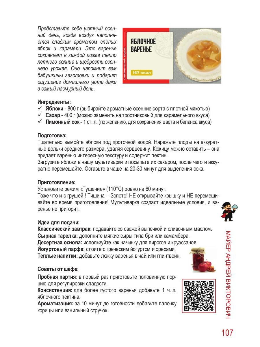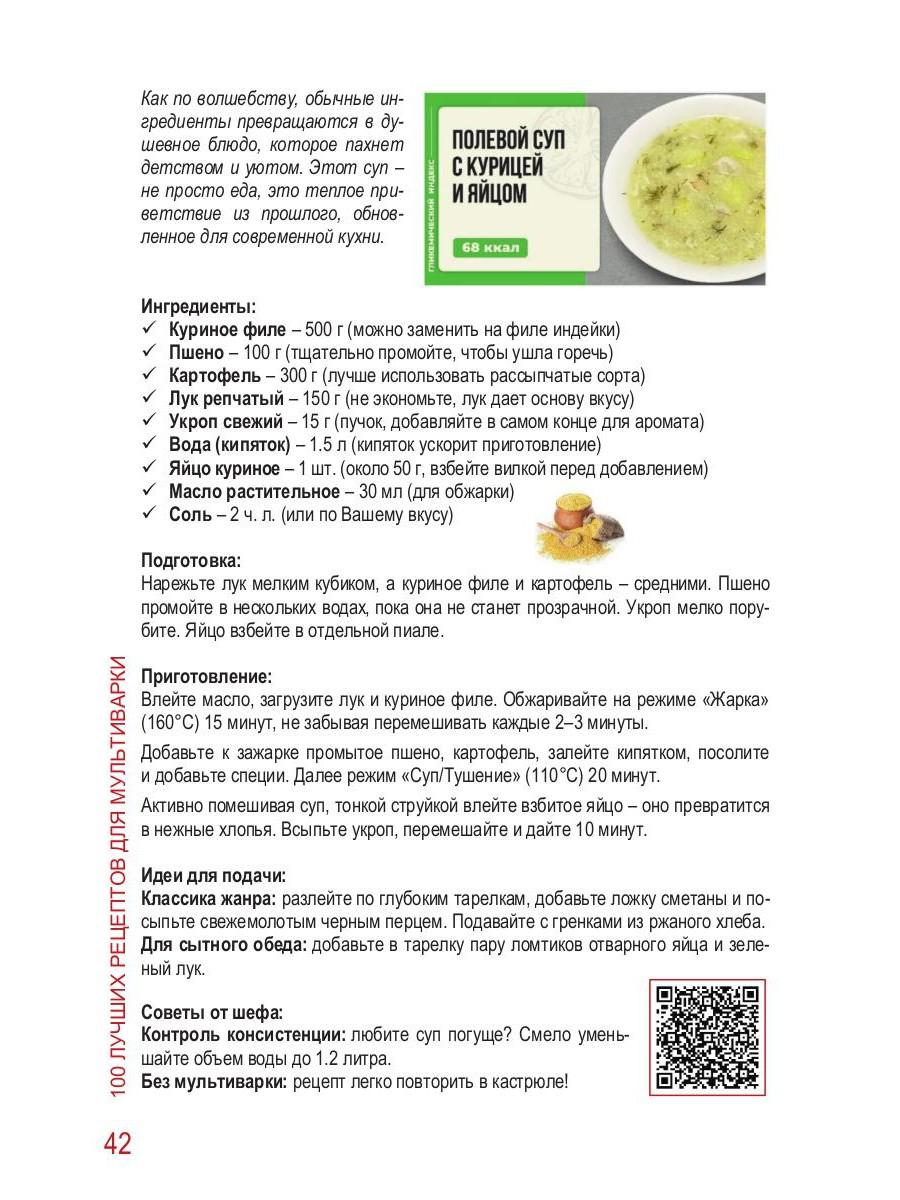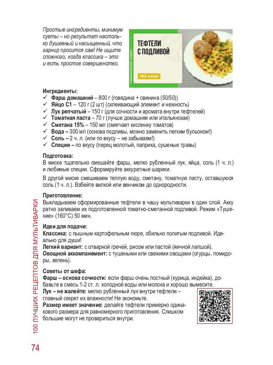 Handling time: 14 days Автор: Майер А.А., «100 Лучших рецептов для мультиварки»: Эта книга — результат многолетней работы автора одного из самых популярных в Рунете каналов о мультиварках. Каждый из 100 рецептов — это не просто список ингредиентов, а готовое руководство к успеху: советы по приготовлению, идеи для сервировки и даже лайфхаки для экономии времени. А еще — QR-коды, которые мгновенно перенесут вас в мир видеоуроков. Ведь эта книга — персональный кулинарный тренер в формате 3 в 1: текст + фото + видео.