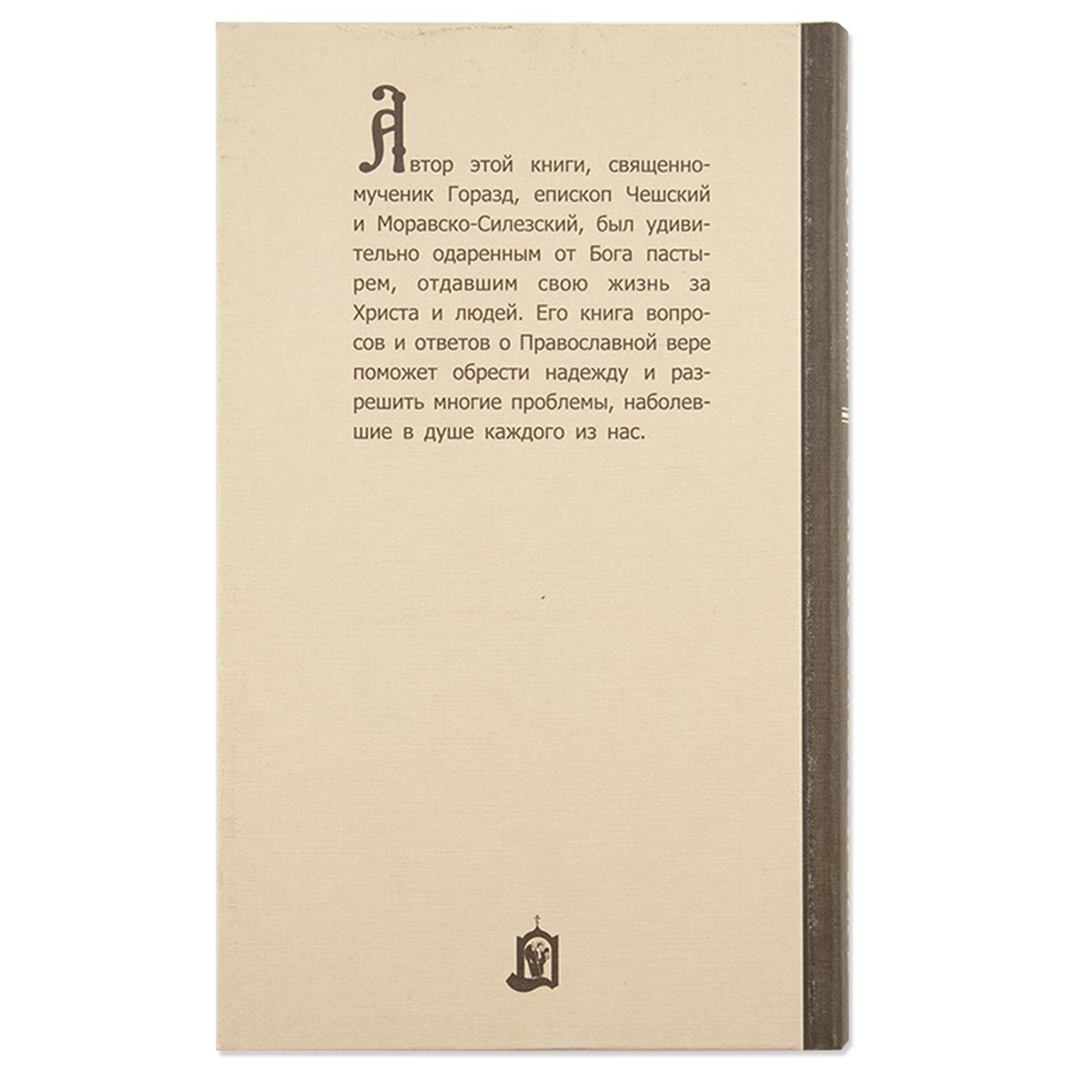 Эта книга вопросов и ответов о Православной вере пастыря-миссионера священномученика Горазда (Павлика), епископа Чешского и Моравско-Силезского, незаменима для современного христианина, живущего сегодня в сложных условиях, когда в сердце рождаются сомнения и всевозможные вопросы. Поможет она и невоцерковленному человеку узнать, что такое Православие, и решить многое из наболевшего в своей душе.Первое издание вышло к 10-летию освящения храма Святого Николая в Котельниках и открытию Представительства Православной Церкви Чешских земель и Словакии в городе Москве.