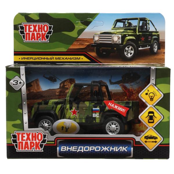 1904C350-RМашина металл свет-звук ВНЕДОРОЖНИК 10,5 см, инерц., КАМУФЛЯЖ, кор. Технопарк в кор.2*120ш