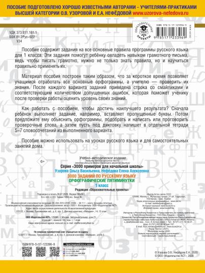 3000 заданий по русскому языку. Орфографические пятиминутки. 1 класс