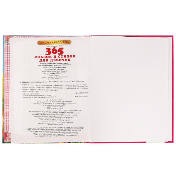 Handling time: 14 days Книга "365 сказок и стихов для девочек. Г. Лазгдынь, В. Д. Берестов, И. П. Токмакова и др. Умка в кор.12шт". Издательство: СИМБАТ. Год выпуска: 2021. Серия: Золотая классика. Переплет: Твердый переплет. Стандарт: 12.