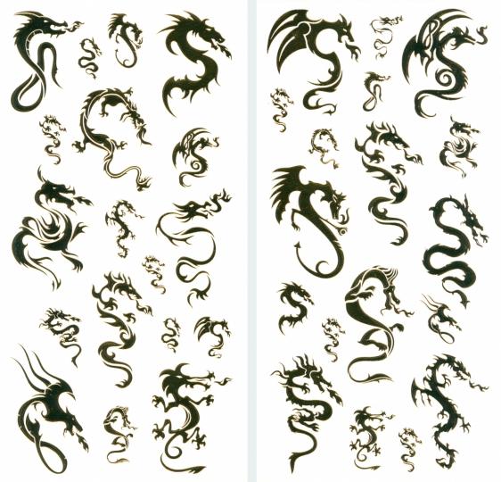 4375 Переводные татуировки. Золотые драконы