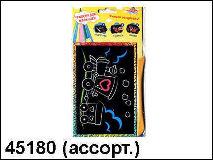 В наборе: картинка на черном фоне (основа цветная сверкающая), специальный карандаш, которым нужно процарапать краску.