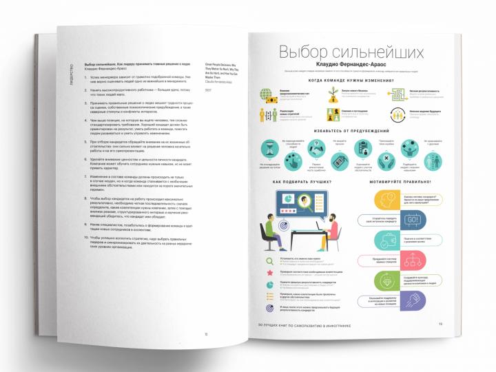 Handling time: 14 days Объем информации, генерируемой людьми, растет в геометрической прогрессии. В приоритете у современного человека - информационные каналы, обеспечивающие легкость, высокую скорость и эффективность восприятия. Человечество переживает настоящий бум инфографики.Это необычное издание - новый способ мотивировать себя и свою команду читать и развиваться. Мы отобрали для вас 50 наиболее важных книг по саморазвитию и трансформировали их в визуальный формат. Кроме того, каждую из инфографик мы дополнили десятью ключевыми идеями авторов. Книга развивает следующие области: результативность, мышление, отношения и коммуникации, лидерство, бизнес, здоровье.Используйте силу визуализации в качестве эффективного инструмента развития!Каждый человек способен реализовать мечту. Для этого надо немного: понимать, какова она, и последовательно двигаться в ее направлении. Что же нам мешает?Мы часто спотыкаемся о то, что не знаем, чего хотим. Также нам не хватает решительности взяться за то, что по-настоящему ценно. Некоторым из нас просто недостает навыков правильно распоряжаться временем, следовать приоритетам, развиваться, коммуницировать.Эта книга - гид по белому полю, отделяющему вас от вашей цели. Это исчерпывающий набор инструментов, которые помогут вам:определить желаемое и спланировать путь;управлять временем;развивать необходимые навыки и возможности;действовать, несмотря на препятствия и страх;правильно распоряжаться заработанным.Главная особенность этого набора - максимальная практичность и эффективность! Мы прочли за вас сотни книг, сэкономив многие дни поиска и чтения, и выбрали самые практико-ориентированные и проверенные. Но не только. Мы визуализировали методики и идеи. В виде инфографики они лучше воспринимаются и легче запоминаются. А 10 ключевых идей каждой книги напомнят о самом важном.Составление и оформление ООО «Смарт Ридинг».