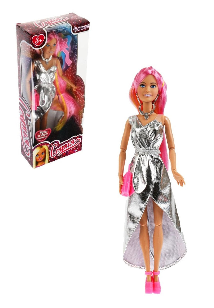 Кукла «София с длинными цветными волосами» ТМ «София и Алекс» станет прекрасным подарком для вашей принцессы:- длинные цветные волосы- блестящие губы- руки и ноги куклы сгибаются- расчёска и сумочка в комплектеСофия одета в модное серебристое платье