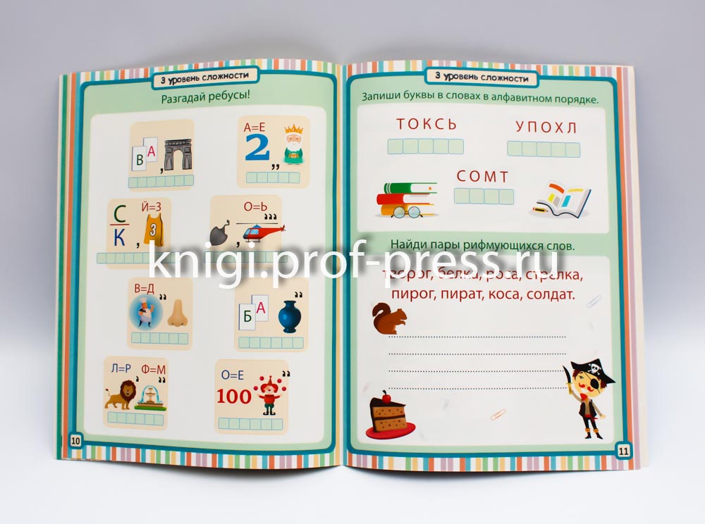 Книжки этой серии помогут вашему ребёнку в развитии интеллекта, внимания и логики. Целых 85 ребусов и заданий ждут малыша под красочной обложкой! В брошюрах четыре уровня сложности, правила решения ребусов вы найдёте на первой странице, а в конце сможете увидеть ответы на все задания. Яркий дизайн обязательно заинтересует малыша и сделает процесс решения логических заданий более весёлым и занимательным.