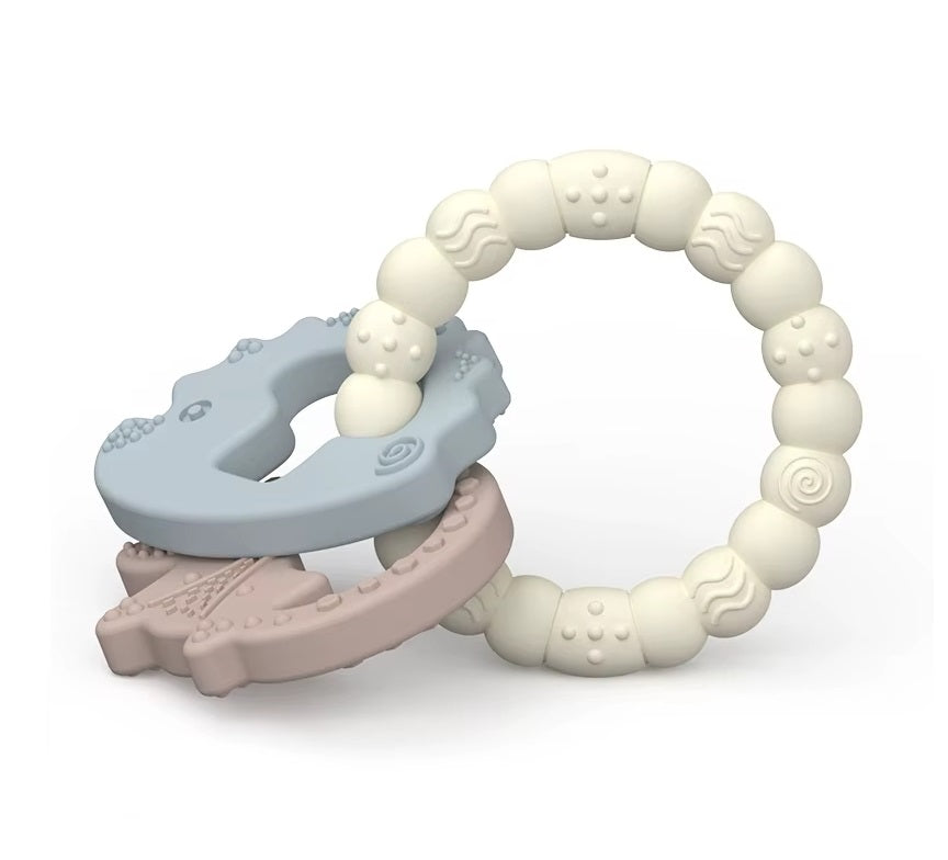 Игрушка "Angel dreams. SK2007 Кольцо-прорезыватель силиконовый с животными (голубой/пыльная роза)".