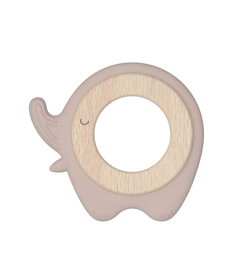 Angel dreams. SK2016-2 Прорезыватель силиконовый с деревянным кольцом "Слоник" (пыльная роза)