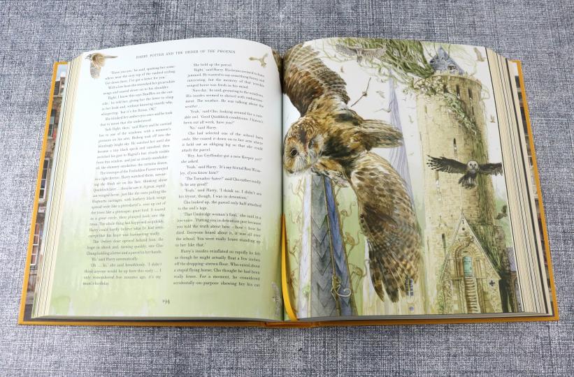 Handling time: 30 days The Sunday Times bestselling Illustrated Edition of J.K. Rowling's fifth Harry Potter adventure, brilliantly evoked in full colour by Kate Greenaway Medal winner Jim Kay, and acclaimed guest artist Neil Packer.As the Order of the Phoenix keeps watch over Harry Potter, troubled times have come to Hogwarts in a year filled with secrets, subterfuge and suspicion. The deliciously dark fifth instalment of Jim Kay's inspired reimagining of J.K. Rowling's classic series is an epic artistic achievement, featuring over 160 illustrations in an astonishing range of visual styles.Now an exciting new collaboration brings together two virtuoso artistic talents, as Kate Greenaway Medal winner Jim Kay is joined by acclaimed guest illustrator Neil Packer, winner of the 2021 BolognaRagazzi Award for non-fiction. Prepare to be enchanted once again as Jim Kay depicts J.K. Rowling's wizarding world with the dazzling artistic alchemy fans around the globe have come to know and love, perfectly complemented by Neil Packer's own unique and eclectic illustrations, skilfully woven into the heart of the story.This is a stunning visual feast of a book, filled with dark magical delights for both fans and new readers alike. Breathtaking scenes, iconic locations and unforgettable characters await inside – Luna Lovegood, Professor Umbridge, Grawp the giant, and many more – as Harry Potter and Dumbledore's Army prepare for the coming battle against Lord Voldemort. Perfect for Potterheads of all ages!'Seeing Jim Kay's illustrations moved me profoundly. I love his interpretation of Harry Potter's world, and I feel honoured and grateful that he has lent his talent to it' - J.K. RowlingБестселлер The Sunday Times иллюстрированное издание Дж.Роулинг - это пятое приключение о Гарри Поттере, блестяще воспроизведенное в полном цвете обладателем медали Кейт Гринуэй Джимом Кеем и известным приглашенным художником Нилом Пакером.Гарри Поттер под присмотром Ордена Феникса, в Хогвартсе наступили трудные времена, год наполнен тайнами, уловками и подозрениями. Восхитительно темная пятая часть, переосмысленная Джимом Кеем классическая серия Роулинг — это грандиозное художественное достижение, включающее более 160 иллюстраций в поразительном разнообразии визуальных стилей.Теперь захватывающее новое сотрудничество объединяет два виртуозных художественных таланта: к обладателю медали Кейт Гринуэй Джиму Кею присоединился известный приглашенный иллюстратор Нил Пэкер, лауреат премии BolognaRagazzi Award 2021 в области документальной литературы. Приготовьтесь восхититься, когда Джим Кей изображает волшебный мир Роулинг с ослепительной художественной алхимией, который знают и любят поклонники по всему миру, и все это прекрасно дополняется уникальными и эклектичными иллюстрациями Нила Пэкера, искусно вплетенными в сердцевину истории.Это потрясающий визуальный праздник книги, наполненный темными магическими удовольствиями как для поклонников, так и для новых читателей. Захватывающие дух сцены, культовые места и незабываемые персонажи — Луна Лавгуд, профессор Амбридж, великан Грох и многие другие — ждут вас внутри, пока Гарри Поттер и армия Дамблдора готовятся к грядущей битве против лорда Волан-де-Морта. Идеально подходит для поттероманов всех возрастов!"Увидев иллюстрации Джима Кея, я была глубоко тронута. Мне нравится его интерпретация мира Гарри Поттера, и я чувствую себя польщенной и благодарной за то, что он приложил к этому свой талант", — Дж. Роулинг.гарри поттер, книга гарри поттер, книга гарри поттера, джоан роулинг, гарри поттер и орден феникса
