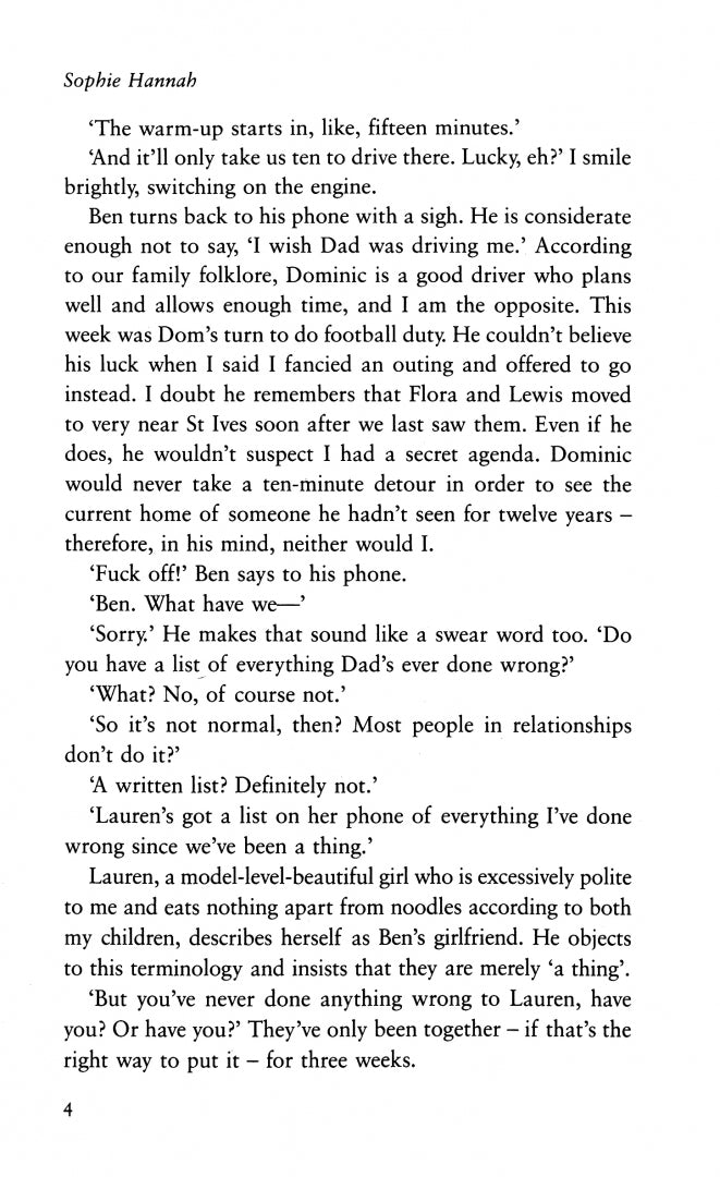 Handling time: 21 days All Beth has to do is drive her son to his Under-14s away match, watch him play, and bring him home.Just because she knows that her former best friend lives near the football ground, that doesn't mean she has to drive past her house and try to catch a glimpse of her. Why would Beth do that, and risk dredging up painful memories? She hasn't seen Flora Braid for twelve years.But she can't resist. She parks outside Flora's house and watches from across the road as Flora and her children, Thomas and Emily, step out of the car. Except...There's something terribly wrong.Flora looks the same, only older - just as Beth would have expected. It's the children that are the problem. Twelve years ago, Thomas and Emily Braid were five and three years old. Today, they look precisely as they did then. They are still five and three. They are Thomas and Emily without a doubt - Beth hears Flora call them by their names - but they haven't changed at all.They are no taller, no older.Why haven't they grown?