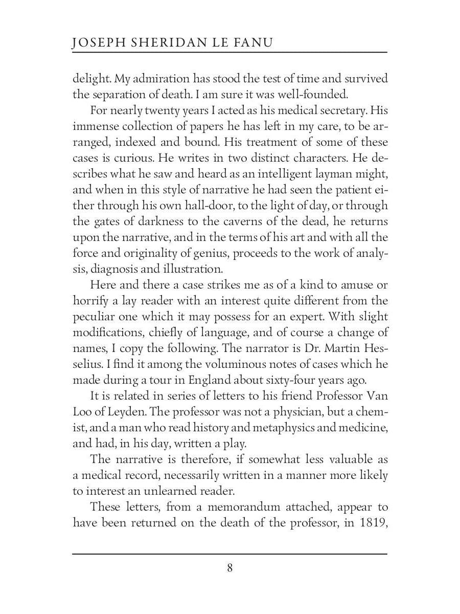 Handling time: 19 days Автор: Le Fanu J.S., «In a Glass Darkly 1. Green Tea, The Familiar _ Mr. Justice Harbottle = Сквозь тусклое стекло 1: на англ.яз»: Joseph Thomas Sheridan Le Fanu was an Irish writer of Gothic novels, one of the most influential ghost story writers of the nineteenth century. "In a Glass Darkly" is a collection of mystery stories presented as cases of the occult detective Dr. Martin Hesselius, who believes that ghosts can be real.