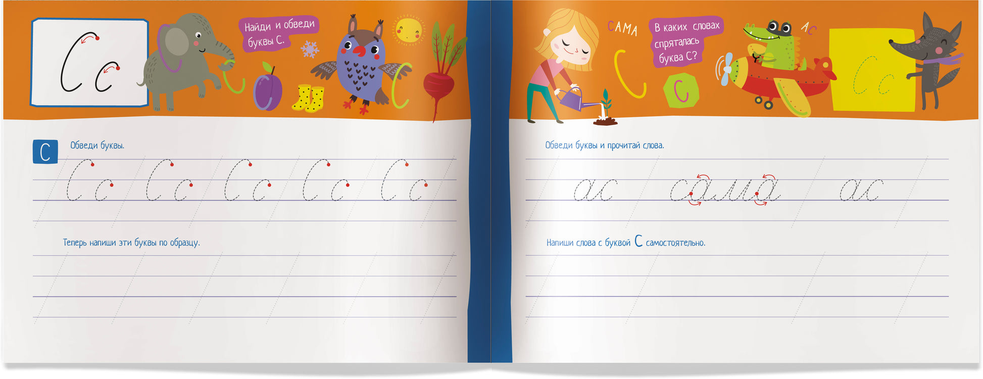 Пишем рукописные буквы. Самусенко О.А. IQ-прописи Эти прописи научат ребёнка правильно писать рукописные буквы и их соединения в словах. Ребёнок запомнит графическое обозначение всех письменных букв, будет учиться безотрывному и наклонному письму. Сначала ребёнок будет находить на картинках буквы и обводить их. Потом потренируется в написании букв на строчках по образцу, а затем будет обводить и писать слова по образцу и самостоятельно. Предназначено для детей от 6 лет.
